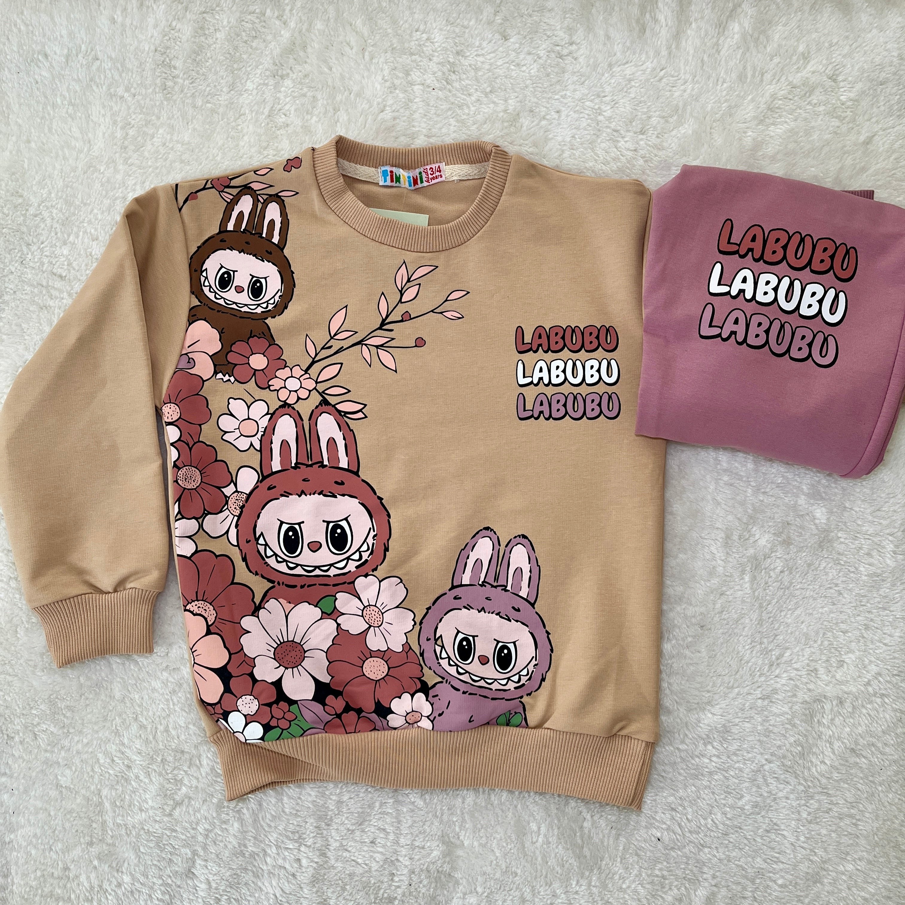 Şık & eğlenceli tasarım: Ön kısmında Labubu ve çiçek baskıları ile çocukların severek giyeceği tatlı ve renkli bir kombin sunar.