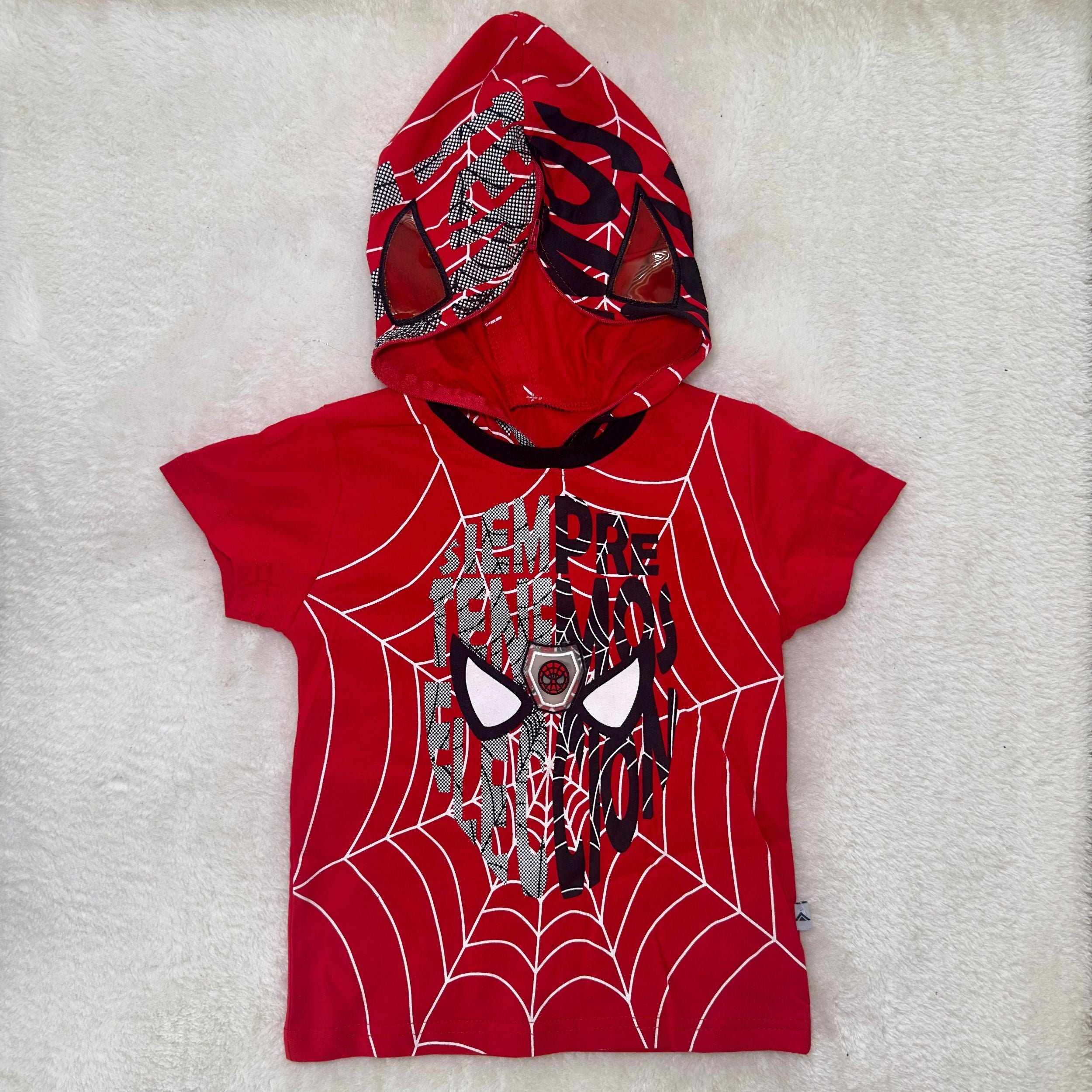 • Örümcek ağı desenli, kapüşonlu kısa kollu tişört